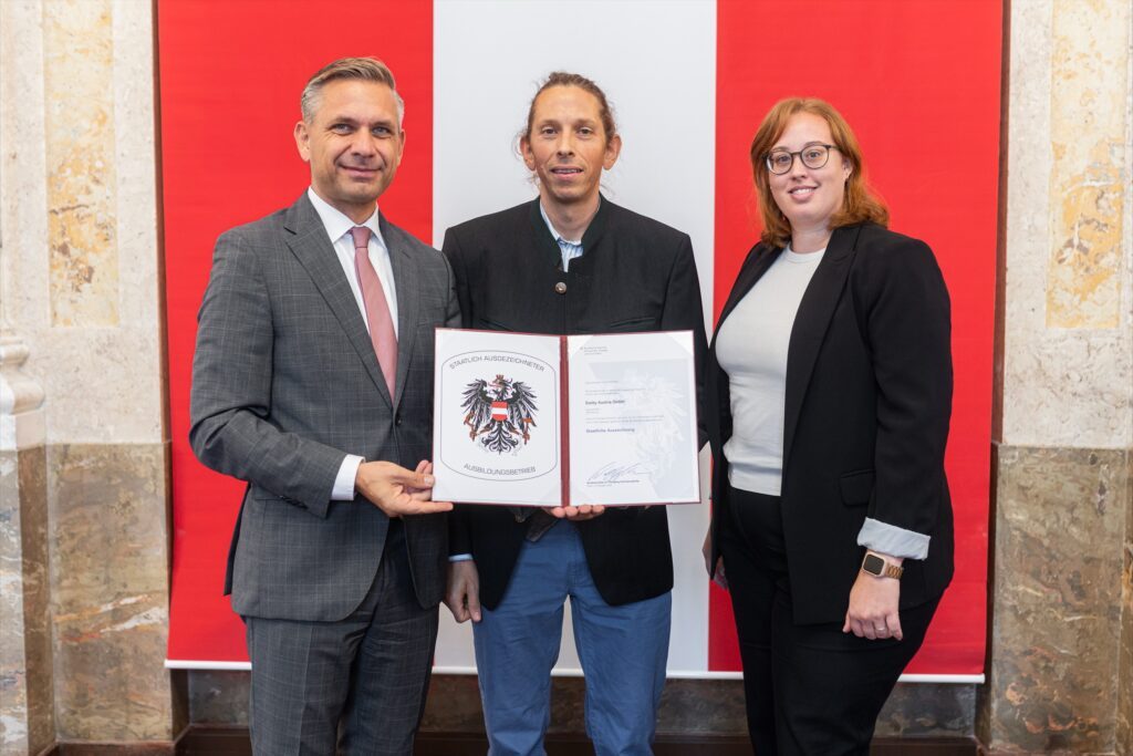 Am 6. Oktober 2025 wurde dem Unternehmen Essity aus dem Piestingtal im Rahmen einer feierlichen Verleihung im Bundesministerium für Wirtschaft, Energie und Tourismus die staatliche Auszeichnung als Ausbildungsbetrieb verliehen. Die Übergabe des Gütesiegels erfolgte durch Bundesminister Dr. Wolfgang Hattmannsdorfer persönlich.
